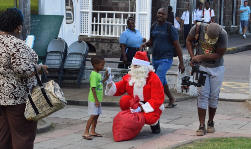 Basseterre, St. Kitts, December 07, 2016 (SKNIS): Arriving on the cruise ship, Celebrity Eclipse at Port Zante, Santa and his elves came and made their way to the Independence Square today (December 07) to distribute presents to young boys and girls thanks to the Florida Caribbean Cruise Association (FCCA).