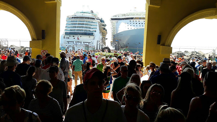 BASSETERRE (4th January, 2017): As revelers took to the streets for the last lap carnival celebrations, the cruise sector of St. Kitts was also jamming with activity on Tuesday with the arrival of the Jewel Of The Seas, Oasis Of The Seas and the Royal Clipper, with a combined maximum capacity of more than 9,000 passengers.