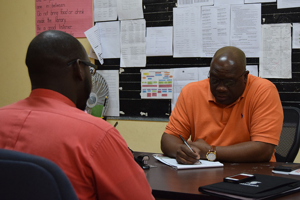 The one-on-one consultations, held at the Edgar T. Morris Primary School in Tabernacle, formed part of the week of activities to mark the second anniversary of the Government of National Unity.