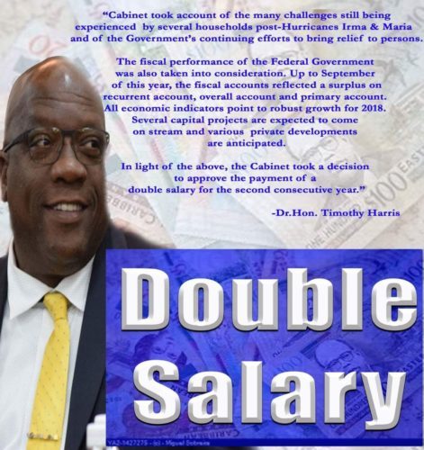 This is the second consecutive year that the Government of St. Kitts and Nevis will award its civil workers with a double salary.