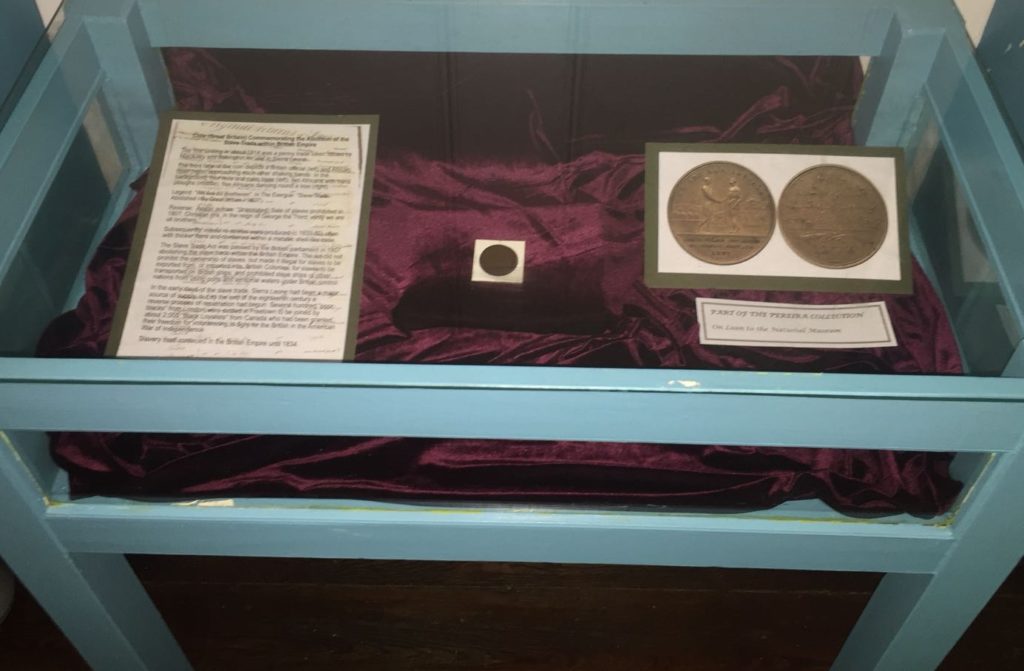 In addition to the prints, he has loaned the exhibit a coin struck in 1814 to commemorate the abolition of the Slave Trade in the British Empire in 1807. The coin was a penny trade token issued for use in Sierra Leone.