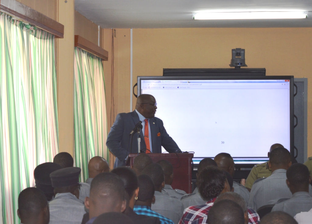Basseterre, St. Kitts, December 21, 2017 (SKNIS): Prime Minister and Minister of National Security, Dr. the Honourable Timothy Harris, gave words of motivation and encouragement when he addressed the men and women of the Royal St. Christopher and Nevis Police Force on Wednesday, December 20. He was a guest at the Commissioner of Police’s final lecture for the year at the Police Training Complex. Also present at the lecture was Attorney General, Honourable Vincent Byron.