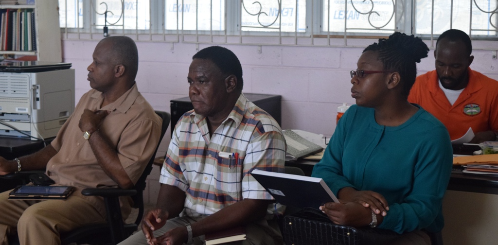 The meeting took place at the Washington Archibald High School. The team from the RSCNPF was headed by Assistant Commissioner of Police (ACP) with responsibility for the Operations Directorate – Terrance James and included Tactical Commander – Superintendent Adolph Adams, Head of the Anti-Gang Unit Task Force – Inspector Travis Rogers and Force Personnel Officer – Mr. Clifford Govia. Meeting with them from the Washington Archibald High School were Principal Mrs. Joan Sargeant, Vice Principal Mr. Stafford Pemberton and Guidance Counselor Pastor Lincoln Connor. From the Basseterre High School were Principal Mr. Maurice Benjamin, Vice Principal Mr. John Samuel and Guidance Counselor Mrs. Sasha-Gay McDermott. Representing the Ministry of Education was Education Officer, Mrs. Lisa Pistana.