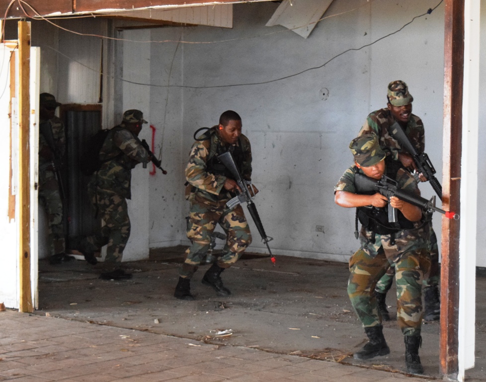The Police received specialised training in the areas of marksmanship and conducting vehicle checkpoints and participated in room clearing and detainee operations, to name a few. This type of training will be useful for the kind of work the Officers have to do during operations conducted by the Tactical Unit. And it is not unusual for Officers to be involved in a joint operation with members of the Defence Force.