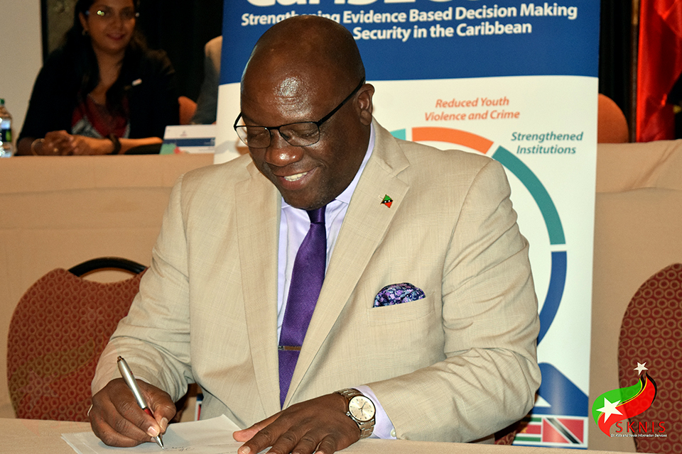 He added, “CariSECURE promotes the use of evidence-based decision making and fosters a reliance on valid, reliable and comparable citizen security data. Using this approach, St. Kitts and Nevis will be in a better position to identify trends, access crime and violence, design effective policies and programmes and develop strategies that target at-risk youths and strengthen communities.”