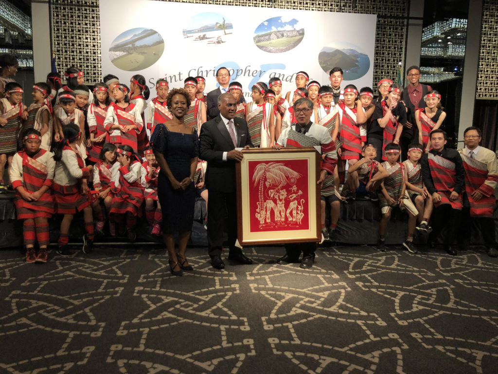 With them in the audience was the Honorable Vance W. Amory, Senior Minister and Minister of Nevis Affairs, Social Security and Ecclesiastical Affairs and Mrs. Amory, Her Excellency Jasmine Huggins, Ambassador of Saint Christopher and Nevis to the Republic of China (Taiwan), high level officials from the Ministry of Foreign Affairs of the Republic of China (Taiwan) and members of the diplomatic Corps and Representatives of Foreign Offices in Taiwan. In her remarks, Ambassador Huggins stated that the evening was special “as it brings together diverse cultures though a universal medium, music…The Pantastics, who traveled from Saint Kitts and Nevis for this special occasion, have captivated audiences throughout the region, winning accolades where ever they have played, and they are excited to display their skills and share their love of steelpan music with you”. Ambassador Huggins further welcomed the Jiaxin Elementary school choir noting that their “impressive performance in Europe after a short learning period earned them the gold medal and the Special Jury Prize in the 2018 Franz-Schubert International Choir Competition”.
