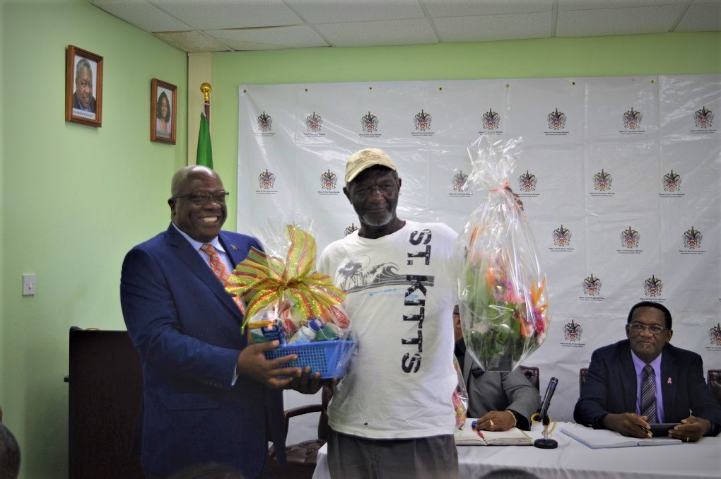 “This month we commemorate the month of older persons. I have the greatest respect for our older persons, their contribution to nation building, and their role as mentors, advisers, as repositories of our culture, tradition and values,” said Prime Minister Harris, as he acknowledged John Paul and Alice Pemberton with gift baskets as tokens of appreciation.