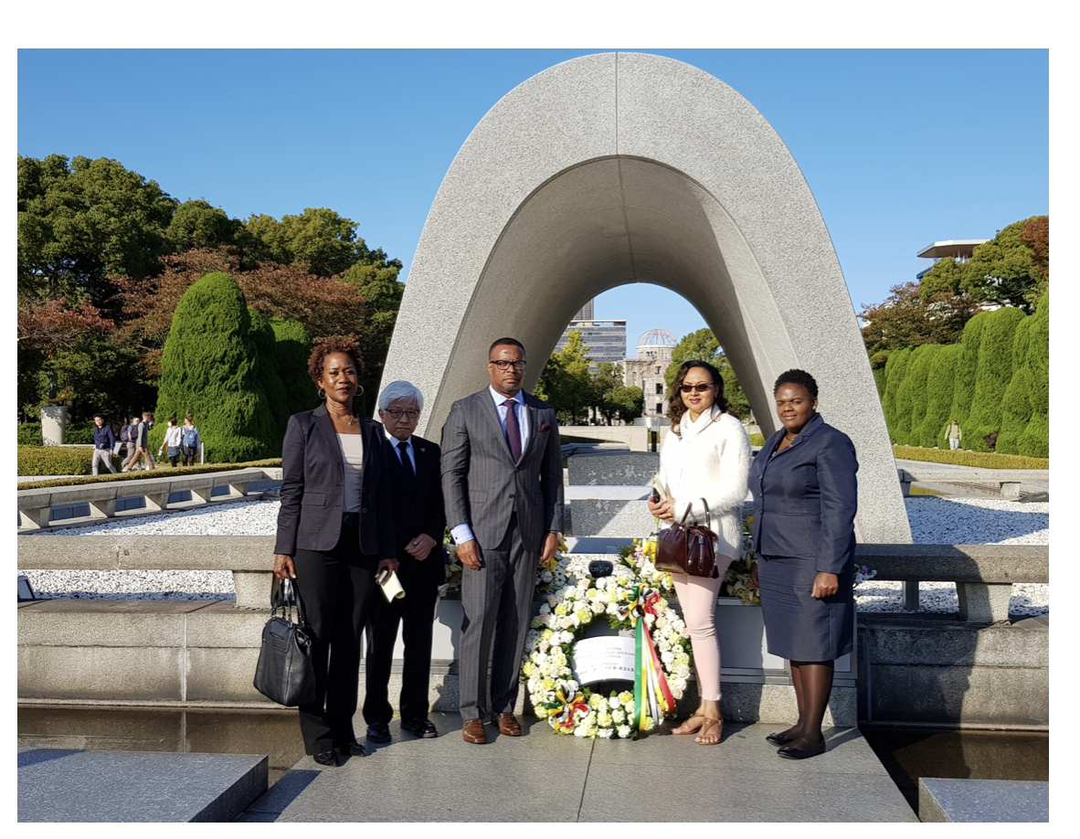 Following on the heels of very constructive meetings with high level officials of the Government of Japan, Minister Brantley visited the Hiroshima Peace Memorial Park, in Hiroshima City, where he signed the visitor’s book and laid a wreath in honourof the thousands of lives that were lost after the world’s first atomic bombing on August 6, 1945. Prior to the laying of the wreath, Minister Brantley had the opportunity to tour the Hiroshima Peace Memorial Museum where the horrors of the detonation of the nuclear bomb were fully displayed.