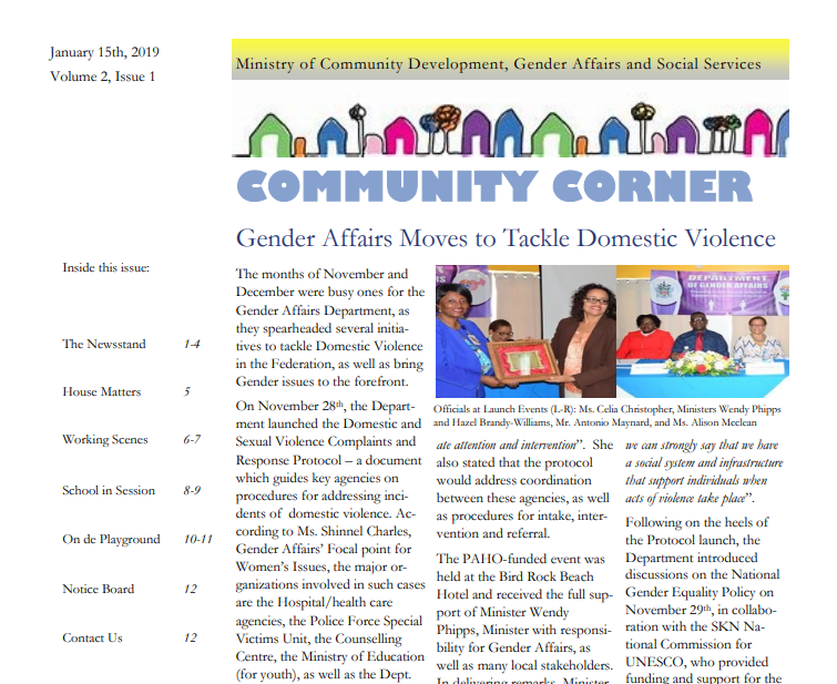 Community Corner (Newsletter of the Ministry of Community Development, Gender Affairs & Social Services)