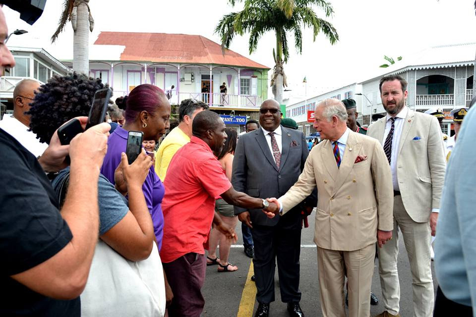 The Royal couple then visited the Berkeley Memorial in the center of the Circus while greeting the scores of visibly excited and cheering crowds of people from all walks of life and nationalities along the way. From there, the Royal Highnesses journeyed to the National Museum located in the Old Treasury Building before heading over to the sister island of Nevis where they were warmly greeted by Premier, the Honourable Mark Brantley and members of the Nevis Island Administration.