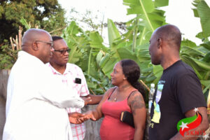 Minister of Community Development et al. and Parliamentary Representative for Constituency 8 (which includes St. Peter’s), the Honourable Eugene Hamilton, led the walkthrough. He was accompanied by Prime Minister Dr. the Honourable Timothy Harris as well as Ambassador His Excellency Jonel Powell. They engaged with persons hanging out at various spots, visited several homes, and met with people wherever they were.