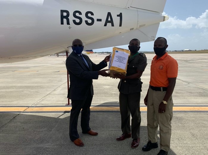 Lt. Col. Michael Jones, Executive Director (Ag), CARICOM IMPACS, who presented the supplies to Mr Terrance James, Commissioner of Corrections, St. Kitts and Nevis on the airport tarmac said that “An outbreak of COVID-19 could have devastating results for prison officers, inmates, visitors and the surrounding community if mitigating measures are not taken to prevent the introduction of the virus in prisons and correctional services”.