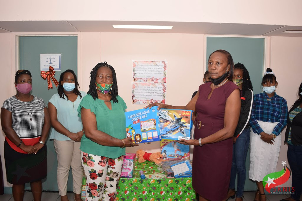 Basseterre, St. Kitts, December 24, 2020 (SKNIS): The Ministry of Justice and Legal Affairs handed over food and gift packages to benefit the less fortunate in society as part of an initiative to spread goodwill and cheer during the Christmas Season.