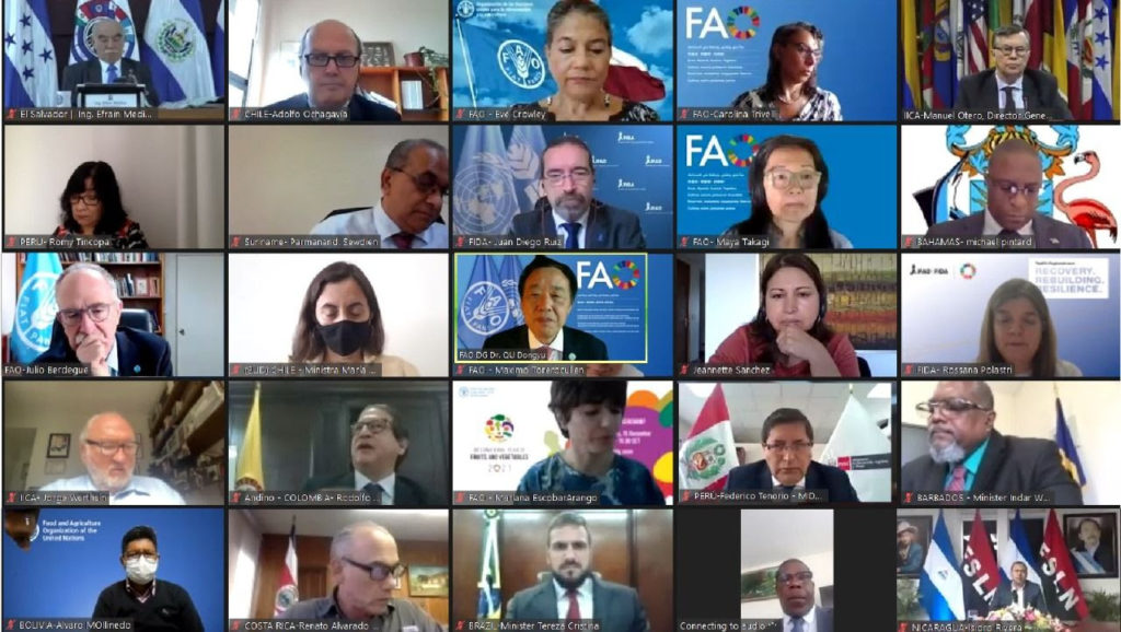 During the meeting, FAO Director General Qu Dongyu underscored the role of Latin America and the Caribbean in global food security, as did Regional Representative Julio Berdegué and the Minister of Agriculture and Livestock of Costa Rica, Renato Alvarado, who noted that the pandemic had demonstrated that economic recovery can be achieved through interinstitutional integration between countries. “For instance, in Central America, the ministers have found common ground to drive the resilience of the agriculture sector through soil protection, water resource management, new technologies and the transfer and good agricultural practices, among other measures”, indicated Alvarado.