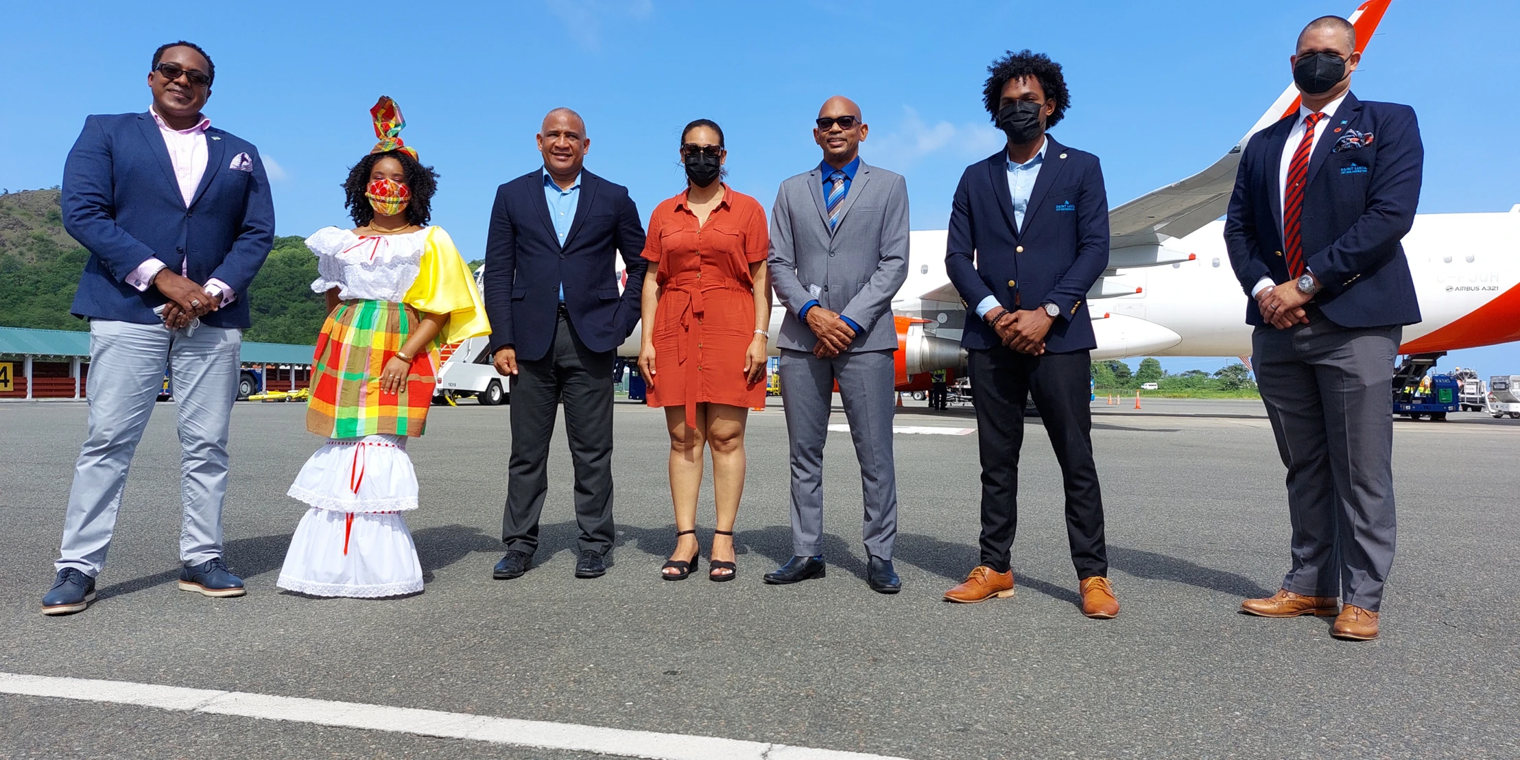To welcome Air Canada, a delegation led by Tourism Minister Hon. Dr. Ernest Hilaire, comprised the Chairman of the Board of Directors -Thaddeus Antoine and staff of the Saint Lucia Tourism Authority, the Saint Lucia Air and Sea Ports Authority (SLASPA), and President of the Saint Lucia Hospitality and Tourism Association – Paul Collymore.