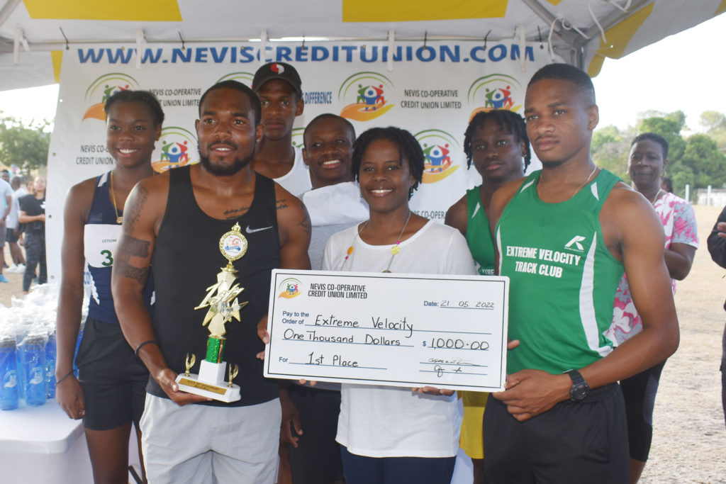 CHARLESTOWN, NEVIS, May 23, 2022 (MMS-SKN) — Twelve teams assembled at the Vance Amory International Airport Saturday morning May 21 for the Nevis Co-operative Credit Union (NCCU) Limited’s 50th Anniversary Relay Run, which was won by Extreme Velocity with a time of 38 minutes and 43 seconds.