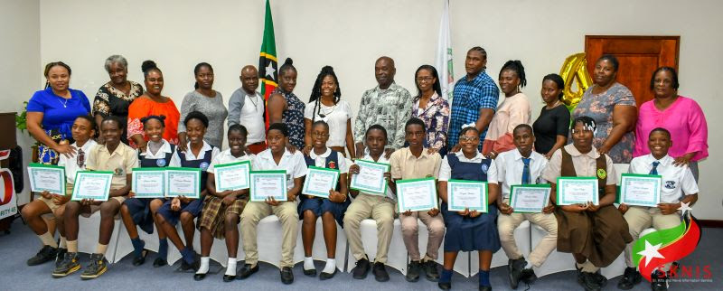 This year’s inductees are Tamyiah Hodge and Joshyan Percival of the Washington Archibald High School; Jah-Rule Ryan of the Cayon High School; Tariek Hendricks – Basseterre High School; Anaikwan Dormoy – Verchilds High; Shequan Liddie, Denyjah Matthew and K’Zenique Flemming of Charles E. Mills Secondary; Vaydan Clarke-Neal and Kezia Phillip of the Gingerland Secondary School; Jayisha Christopher of Charlestown Secondary; and Yeshua Langley and Raiden Blair of the Saddlers Secondary School.