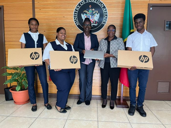 Basseterre, Saint Kitts, 22nd May, 2023 (Ministry of Foreign Affairs)- On the heels of a successful Diplomatic Week, students of the Clarence Fitzroy Bryant College (CFBC), received laptops donated by His Excellency Dr. Kevin Isaac, High Commissioner of Saint Kitts and Nevis to the United Kingdom of Great Britain and Nothern Ireland in a brief handing over ceremony at the Ministry of Foreign Affairs on Monday 8th May, 2023.