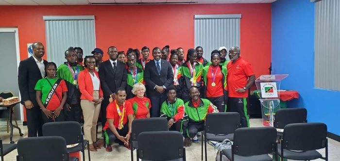 After leaving the airport, the delegation headed to Olympic House, where government officials including Prime Minister the Honourable Dr. Terrance Drew, Minister the Honourable Konris Maynard, and Minister of State the Honourable, Isalean Phillip, welcomed the athletes, coaches and officials. Ambassador in the Ministry of Sports, His Excellency Kenny Douglas, was also present.