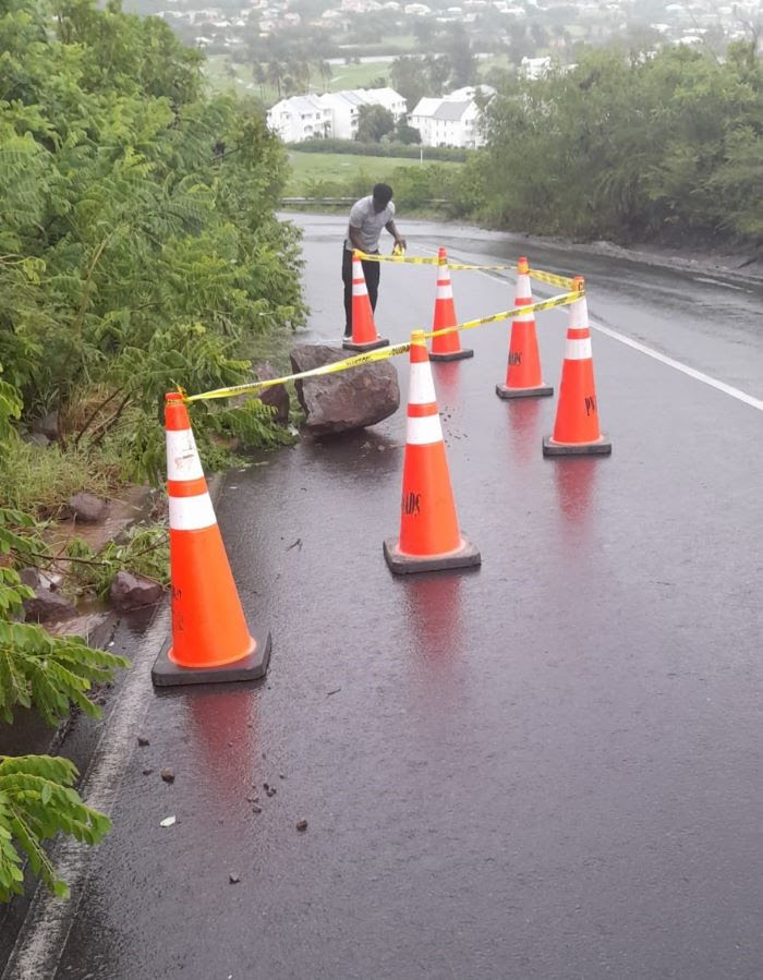 Basseterre, St. Kitts, October 27, 2023 (SKNIS): The National Emergency Management Agency (NEMA) is strongly advising motorists and pedestrians to exercise caution on the road this wet weekend as the terrain is prone to land slippage, flash flooding and rock-fall in some areas of the country, such as the South-East Peninsula and College Street Ghaut in Basseterre.