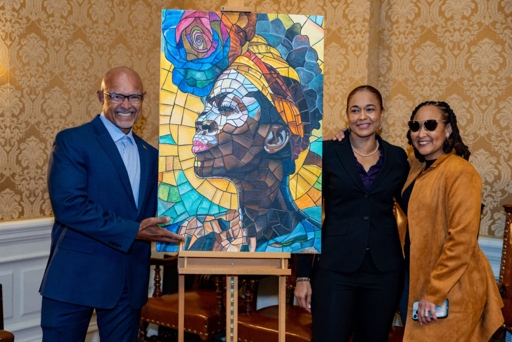 Washington, D.C., November 8, 2024 – In a landmark ceremony at the Organization of American States (OAS) Headquarters, acclaimed Saint Kitts and Nevis artist Vaughn Anslyn formally witnessed his celebrated artwork, ‘Mosaic – A Woman of Power in an Everyday World’, being presented by the Permanent Mission of Saint Kitts and Nevis to the OAS to the Secretary General of the OAS who received it on behalf of the OAS Art Museum of the Americas (AMA). This historic occasion, led by Ambassador Jacinth Henry-Martin, Permanent Representative of Saint Kitts and Nevis to the OAS, marked a historic first for the entry of artwork from Saint Kitts and Nevis to the prestigious permanent art collection of the AMA.