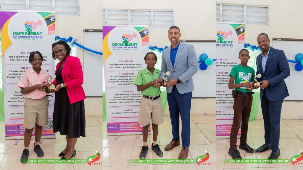 The young men recognised were Quezon Elign Jr. of the Tucker Clarke Primary; Nathan Liddie – Beach Allen Primary; Rajarn Morton – Immaculate Conception Catholic School; Amari Kelly – George Moody Stuart School; Tzuriel Percival – St. Kitts Seventh Day Adventist School; Bijon Alexander – Halliday-Smith Primary; Dimaggio Grant – Epworth Maurice Hillier Memorial Junior School; Za’Nai Watson-Descartes – Tyrell Williams Primary, and Dwaynan Giraudel – Cotton-Thomas Comprehensive. Other boys awarded were Joshua Challenger of the Sandy Point Primary; Wazem Warren – Newton Ground Primary; Jaquandre Dasent – St. Paul’s Primary; Jaquan Warner – Dieppe Bay Bay Primary; Desrian Williams – Saddlers Primary; Dwevaughn Matthew – Edgar T. Morris Primary; Collin Thomas – Violet Petty Primary, and D’Quan Procter of the Joshua Obadiah Primary. Additionally, Emijah Maynard of the Deane Glasford Primary; Tivaun Patrick – Cayon Primary, Kemar Kareem Clarke – Dr. William Primary; Allanjé Cannonier – Bronte Welsh Primary; Kayode Tafari Kelly – Ross Preparatory, and Valentino Esposito – St. Kitts International Academy were also recognised.